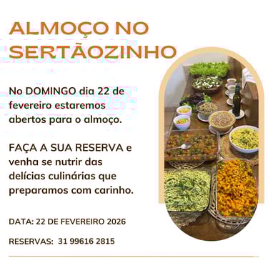 UMO OPORTUNIDADE: vir almoçar no Sertãozinho e se deliciar com as comidinhas que preparamos com muito carinho e cuidado.